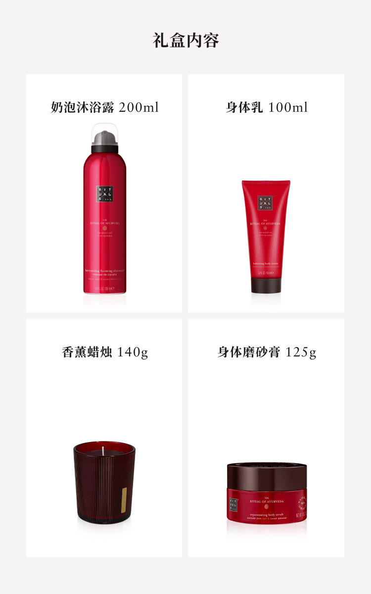梵心仪式身体香氛中号礼盒_沐浴露+磨砂膏+身体乳+香薰蜡烛